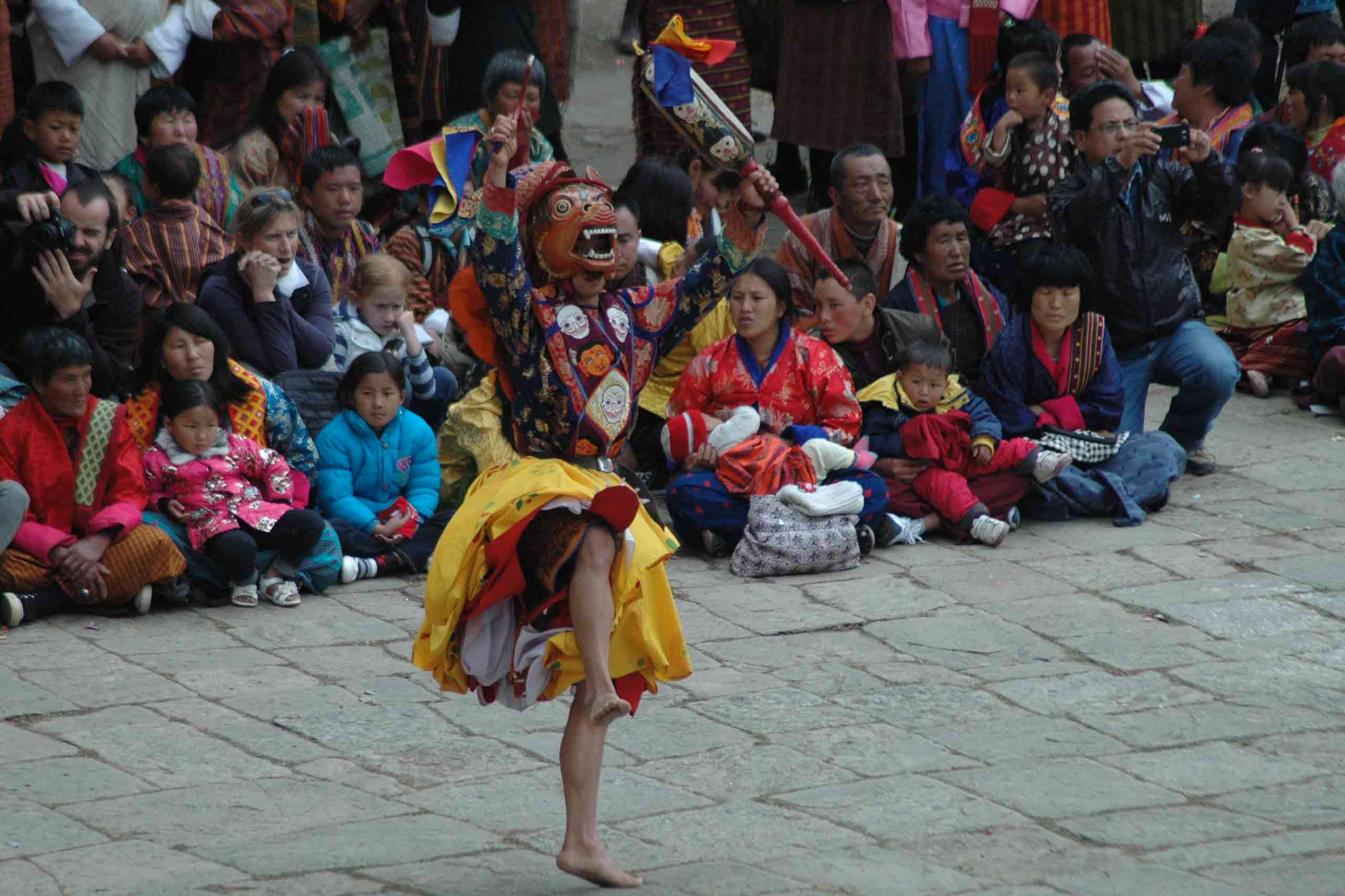 Arrive in Paro and attend Paro Tshechu at Rinpung Dzong.